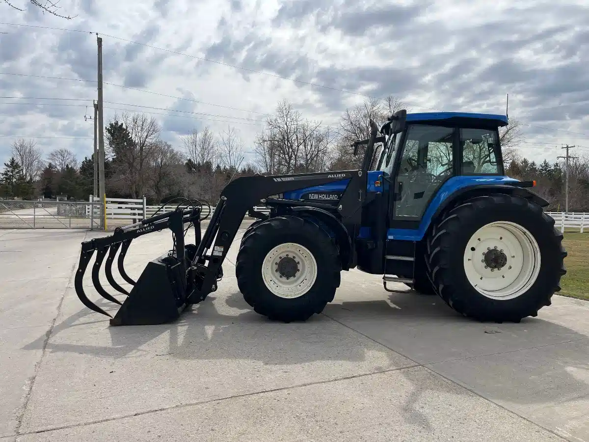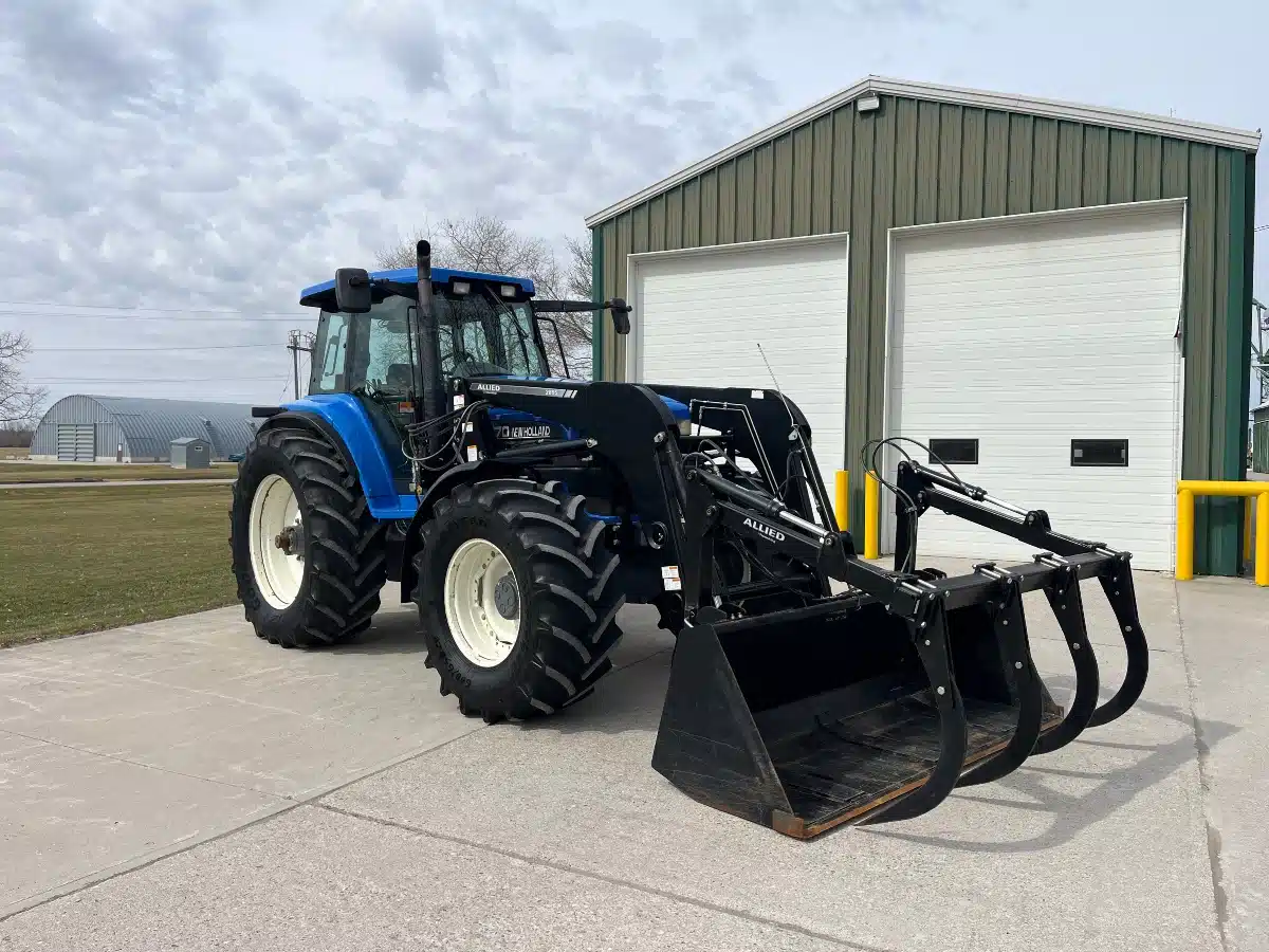 - 2000 New Holland 8770 – 18 Speed PowerShift (40KM), Four Rear Remotes, 1000 PTO, Comes With Three Point Arms, 620/70R42 Rear Tires, 600/65R28 Front Tires, Allied Loader, 100” Grapple Bucket Like New, 8,040 Hours. $87,500 Trades Accepted, Financing & Delivery Is Available.