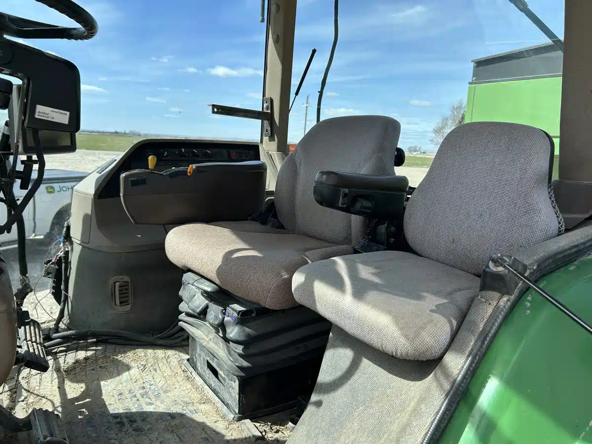 - 2002 JOHN DEERE 8320, 16F/4R POWERSHIFT TRANSMISSION, RIGHT-HAND REVERSER INTEGRATED IN GEAR SHIFTER, MFWD WITH 1500 FRONT AXLE, 420/90R30 FRONT TIRES SINGLES, 480/80R46 REAR TIRES DUALS, 4 SCVS MECHANICAL, 1 3/4 1000 PTO, CAT 3 THREE POINT HITCH QUICK HITCH INCLUDED, CAT 3 DRAWBAR WITH HD SUPPORT, AUTOTRAC PLUG & PLAY READY HAS ATU, NO STARFIRE RECEIVER INCLUDED, NO ARMREST MONITOR, REAR AXLE WEIGHTS 1400 INSIDE EACH SIDE, MANUAL ADJUST SIDE MIRRORS, HYDRAULIC POWER STEERING, NOT AUTONOMY READY, AIR SEAT CLOTH, HALOGEN LIGHT PACKAGE, NO TRAILER BRAKES, NO FRONT FENDERS, VISIT DEEREQUIPMENT.COM TO VIEW OUR INVENTORY ONLINE. SU# 377222 — Transmission: Power Shift