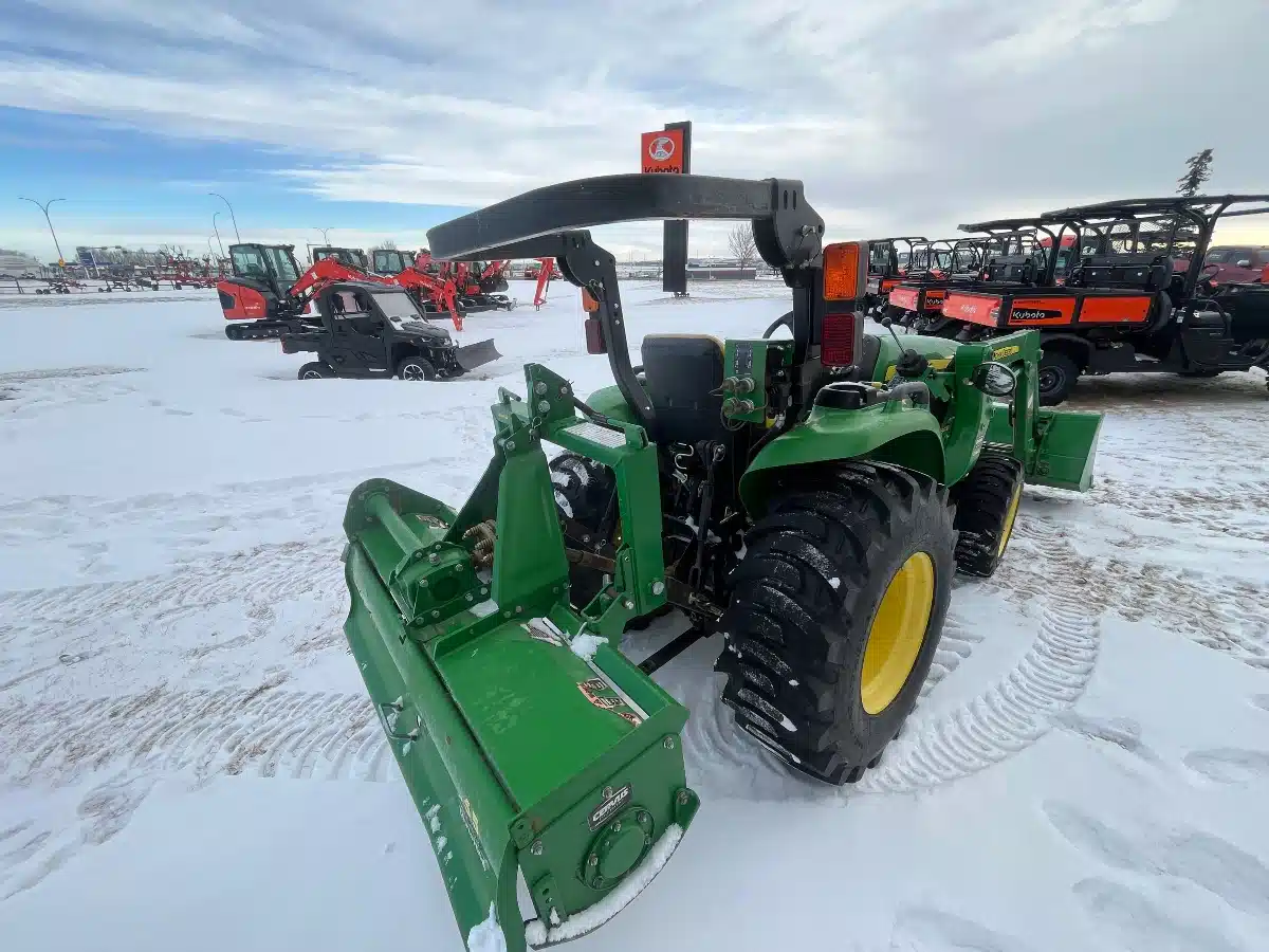 - 2015 Used John Deere 3038E Compact Tractor — 36.7 HP with 303 Hours. Reliable, work-ready performance for Alberta conditions.