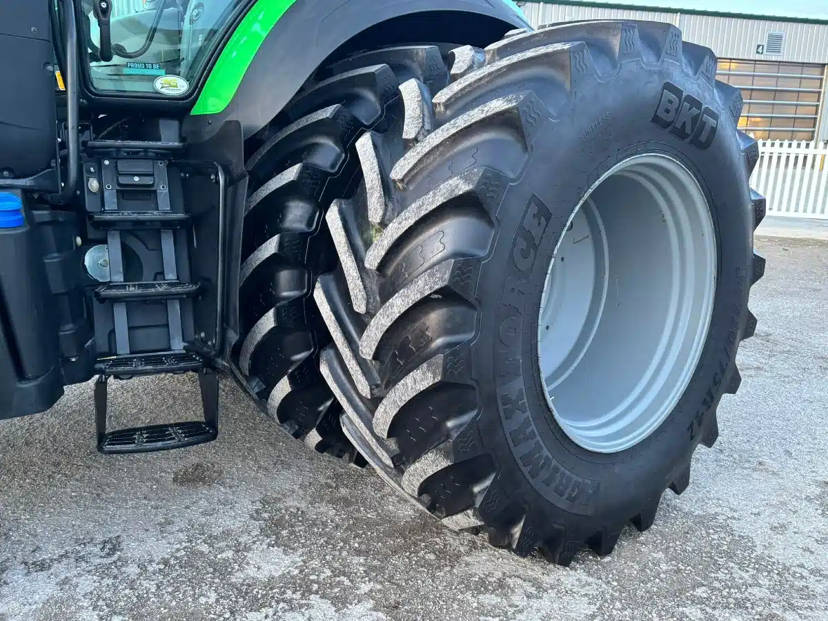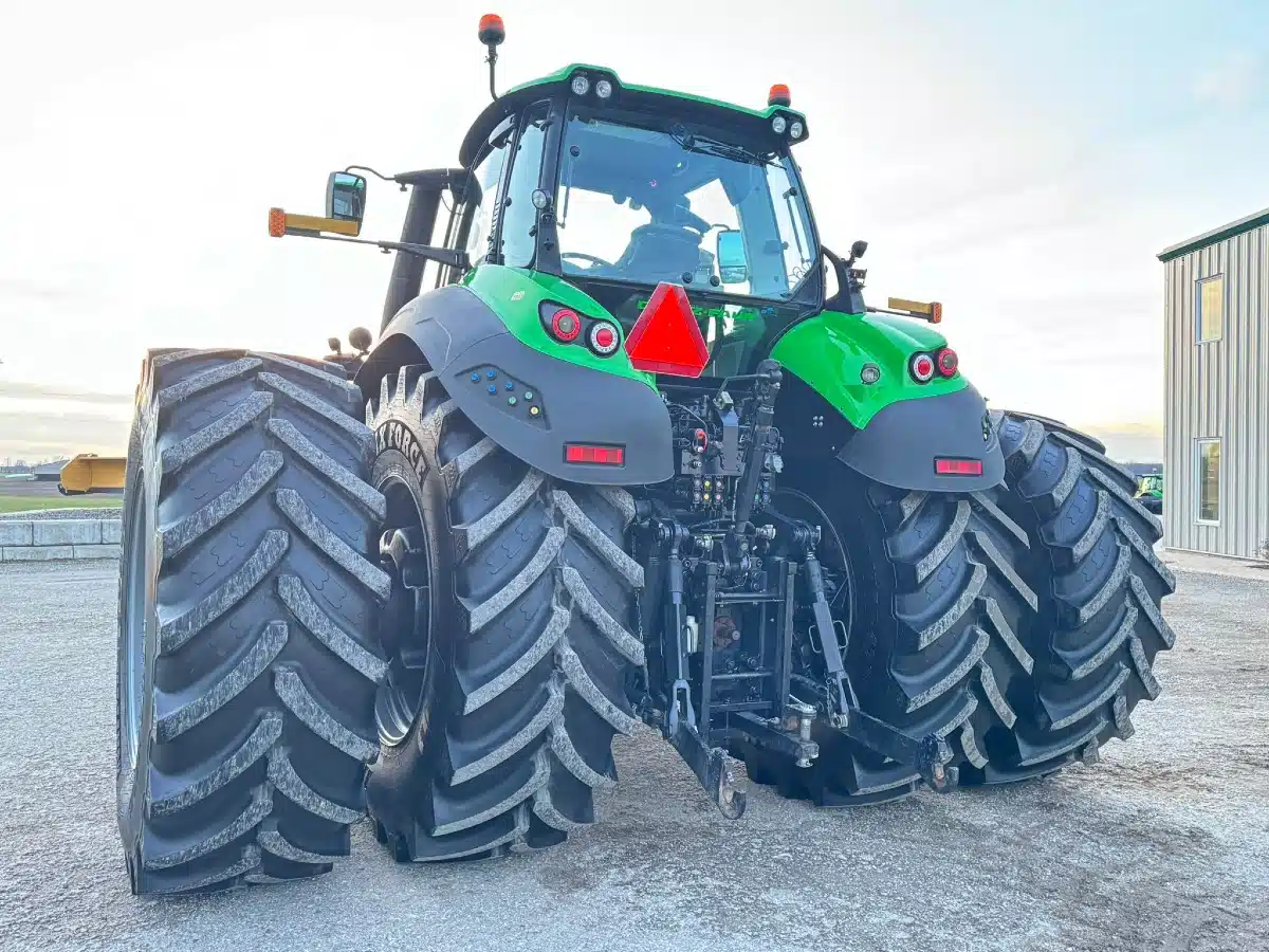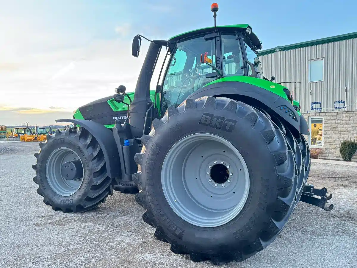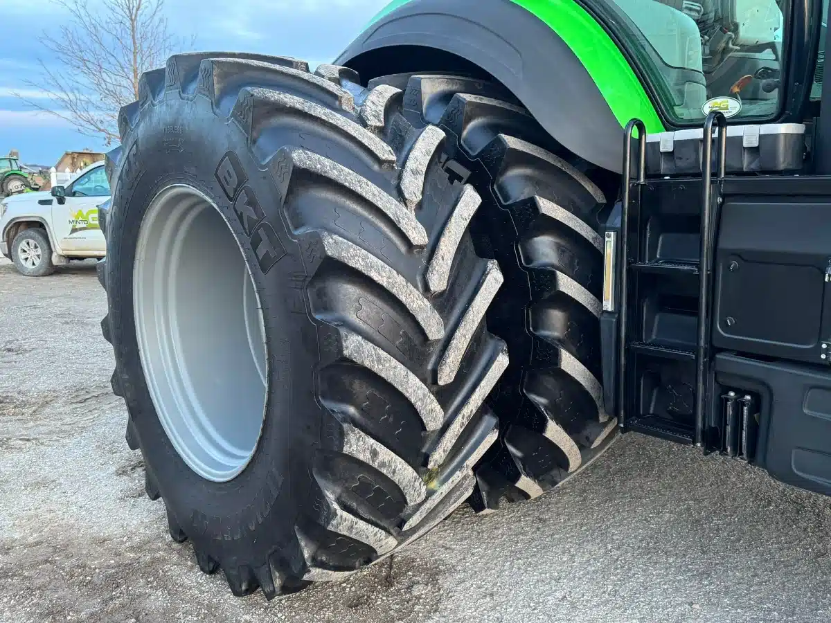 - Deutz 336 HP., Tier 4F, variable-speed transmission, automatic guidance, WAAS antenna, X35 I-monitor, IsoBus, electrically adjustable and heated mirrors, air conditioning, Halogen/LED lighting package, rear-view camera, 210L/min. load sense, 6 rear remote valves, power beyond connections, hydraulic and pneumatic trailer brakes, front axle suspension, pneumatic cab suspension, front hitch and PTO, 2 front remote valves, NEW BKT Agrimax Force Tire Pkg. 710/75R42 rear, 710/60R34 fronts, with duals