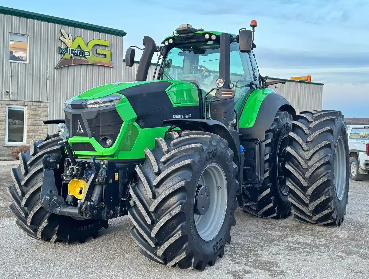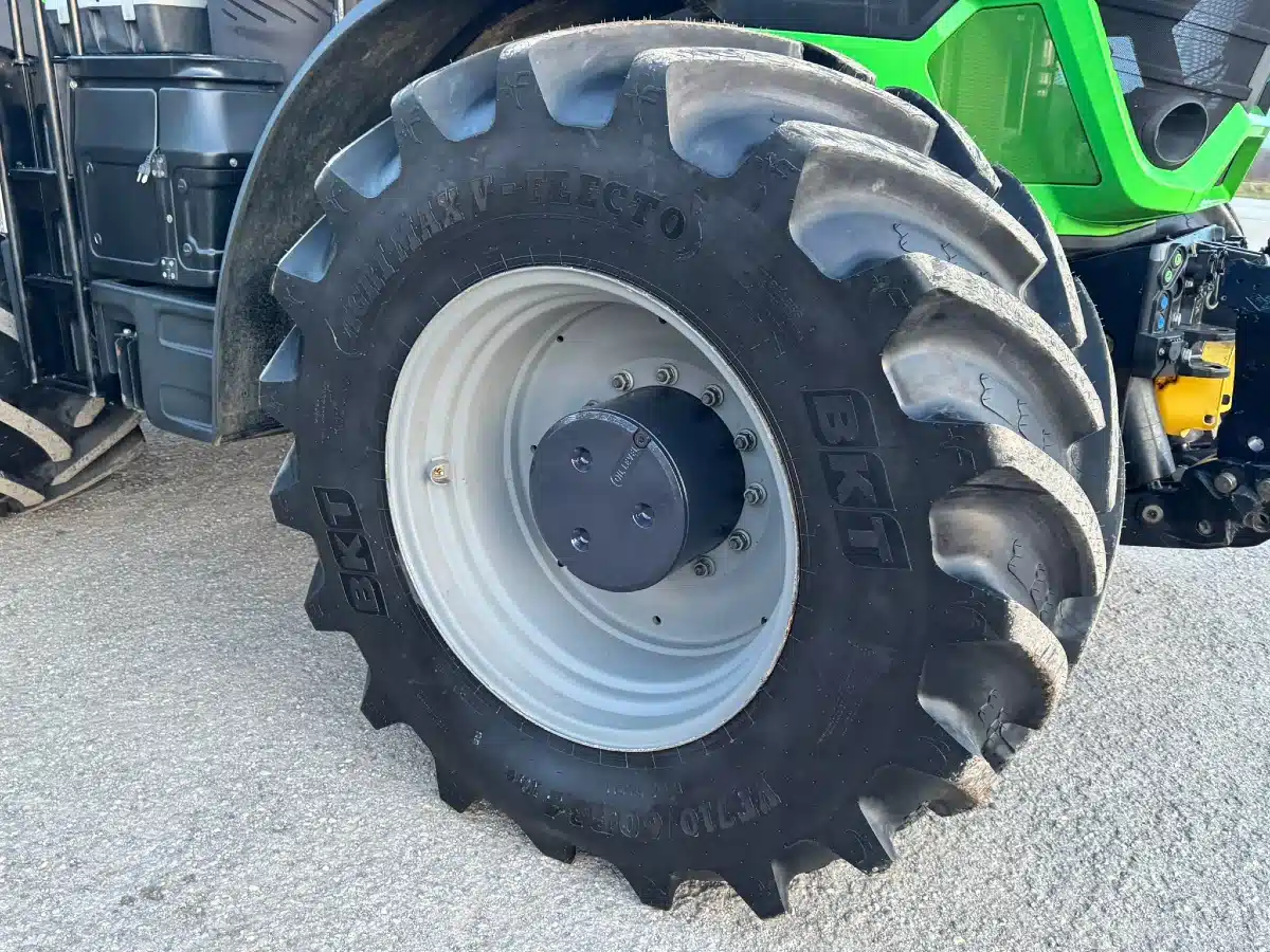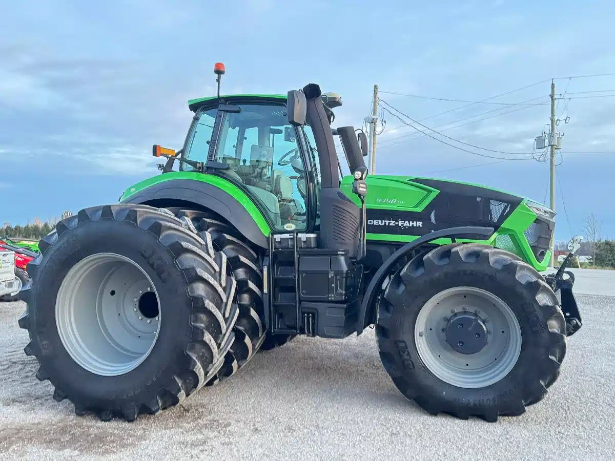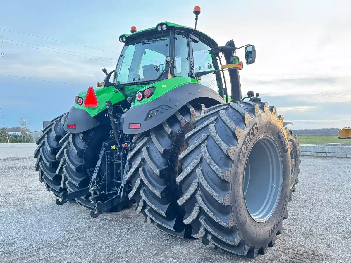 - Deutz 336 HP., Tier 4F, variable-speed transmission, automatic guidance, WAAS antenna, X35 I-monitor, IsoBus, electrically adjustable and heated mirrors, air conditioning, Halogen/LED lighting package, rear-view camera, 210L/min. load sense, 6 rear remote valves, power beyond connections, hydraulic and pneumatic trailer brakes, front axle suspension, pneumatic cab suspension, front hitch and PTO, 2 front remote valves, NEW BKT Agrimax Force Tire Pkg. 710/75R42 rear, 710/60R34 fronts, with duals