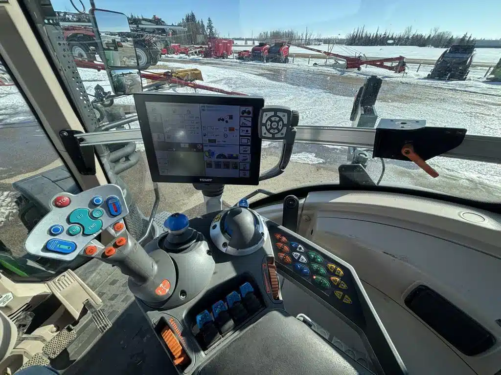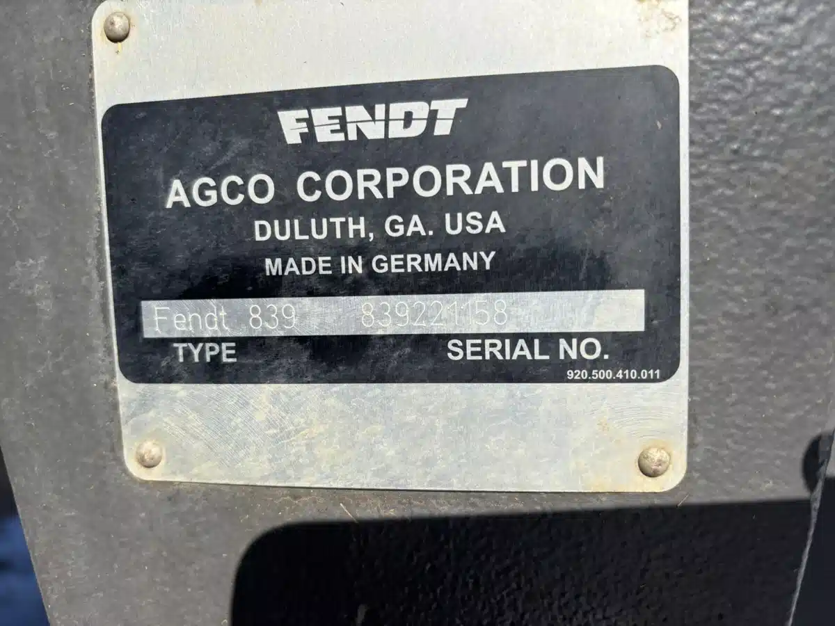 - Please Call for Machine Availability & Location; 710/70R42 90%; 540/65R34 90%; Goodyear; profi plus; VarioGuide standard Trimble; 98″ axle; 1000/1000E pto; 4 hyd valves; 54 GPM high volume hyd pump; Fendt stability control; electric mirrors; backup alarm; hyd trailer brakes; exhaust brake; reversible cooling fan; (2) rotary lights; GPS roof hatch; rear sun visor; pneumatic cab susp; floor mat; 1250kg front weight; (4) 1200lb reear weights.