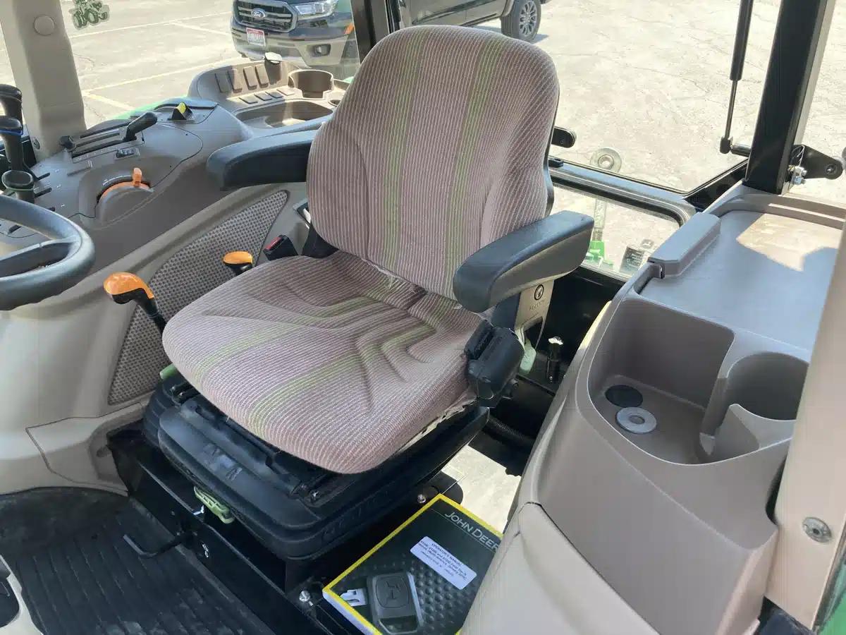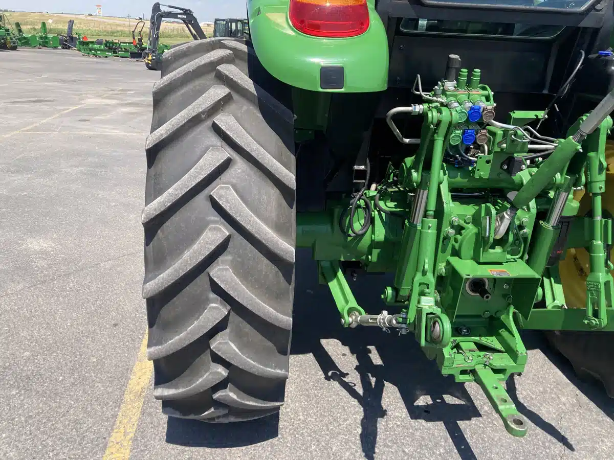 2020 JOHN DEERE 6120E, ENGINE HORSEPOWER 120, STANDARD CAB, RIGHT AND LEFT HAND DOORS, AM/FM RADIO, MECHANICAL SUSPENSION CLOTH SEAT, STANDARD LIGHT PACKAGE, NO INSTRUCTIONAL SEAT, QUAD RANGE TRANSMISSION, LEFT HAND REVERSER, 12 FORWARD AND 12 REVERSE GEARS, OPEN CENTER HYDRAULIC SYSTEM, 20 GPM HYDRAULIC PUMP, THREE REAR REMOTES MECHANICALLY OPERATED, 540/1000 RPM PTO, CATEGORY 2 THREE POINT HITCH WITH BALL ENDS, QUICK HITCH NOT INCLUDED, 460/85R34 SINGLE REAR TIRES WITH STEEL REAR WHEELS, FLANGED REAR AXLE, NO REAR WEIGHTS, 340/85R24 FRONT TIRES, MECHANICAL FRONT WHEEL DRIVE, FRONT WEIGHT BRACKET ONLY, TRACTOR IS NOT LOADER READY, NO PRECISION AG COMPONENTS, NO RECEIVER, NO DISPLAY, NO WARRANTY REMAINING, OPERATORS MANUAL NOT INCLUDED, VISIT DEEREQUIPMENT.COM TO VIEW OUR INVENTORY ONLINE. SU# 358975 — Transmission: Partial Power Shift