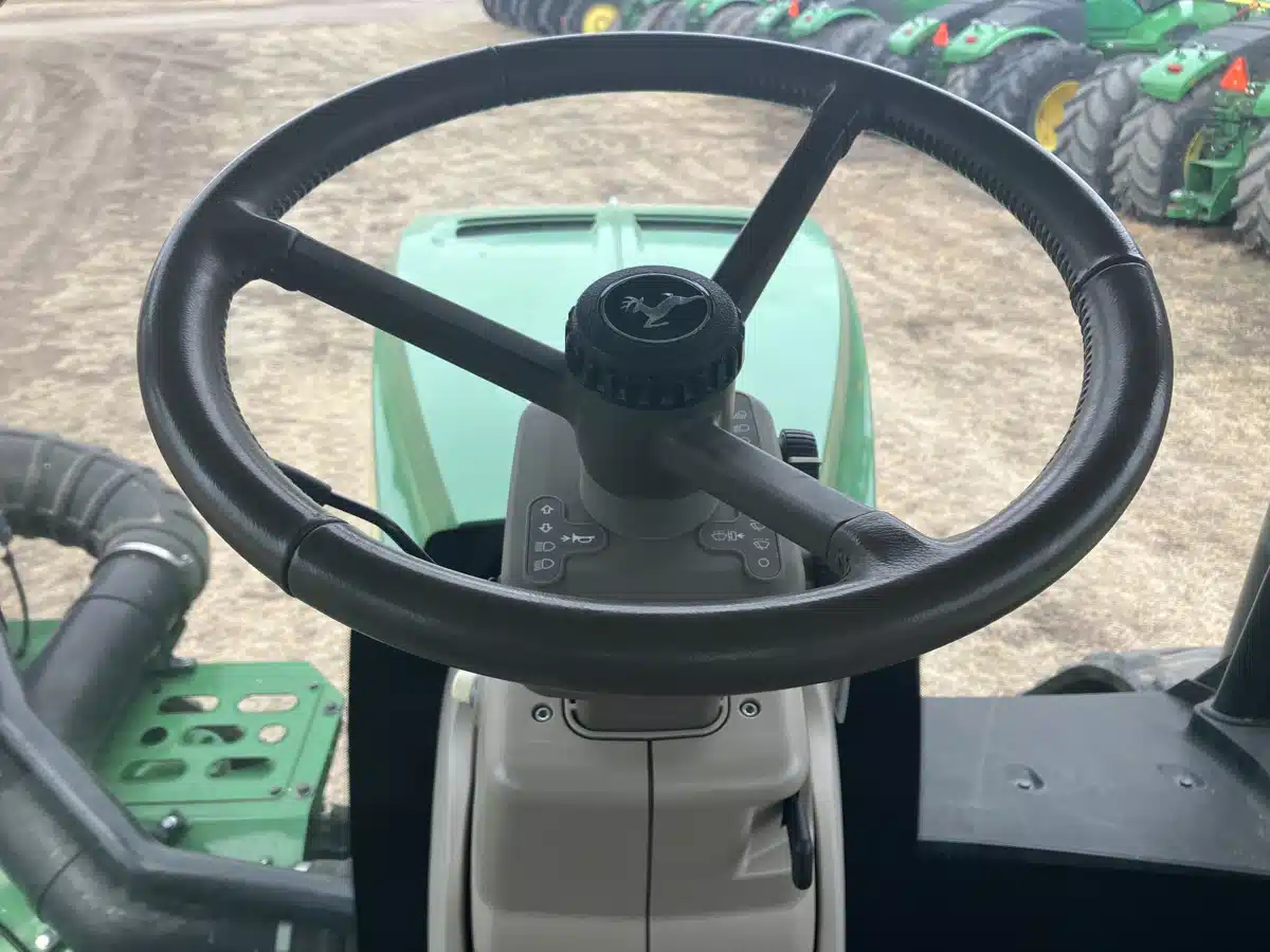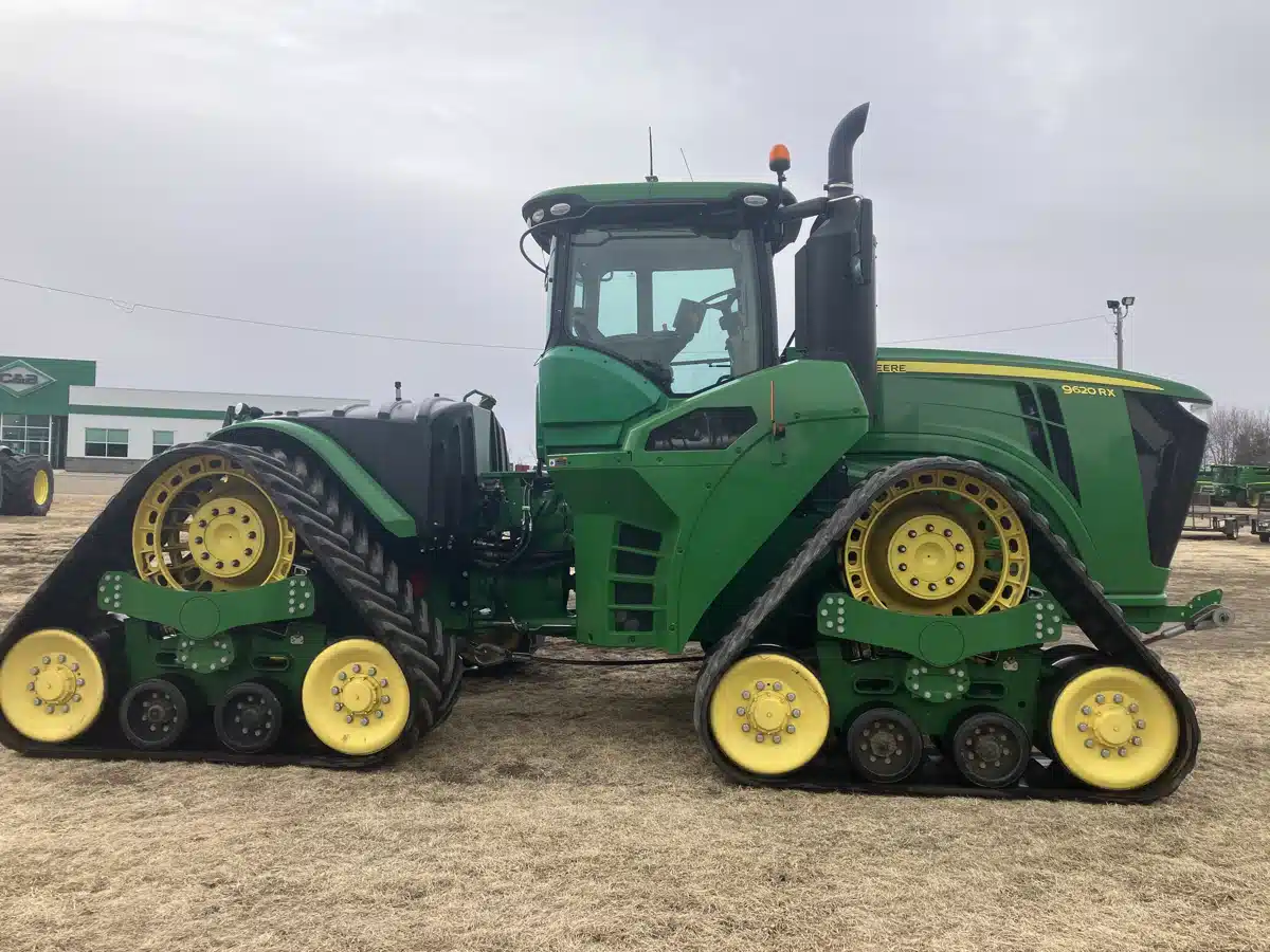 - 2021 JOHN DEERE 9620RX, 620 HP, 18F/6R POWERSHIFT TRANSMISSION, 36″ 3500 TRACKS, 6 SCVS ELECTRONIC, 1 AUXILIARY HYDRAULIC CONNECTION 1/2 INCH, 1 CASE DRAIN, TRAILER BRAKE KIT, 115 GPM DUAL HYDRAULIC PUMPS, 1 3/4 1000 PTO, CAT 5 DRAWBAR WITH HD SUPPORT, GREENSTAR READY, NO STARFIRE RECEIVER INCLUDED, GEN 4 4600 COMMAND CENTER DISPLAY, AUTOMATION 4.0 ACTIVATION, ELECTRIC ADJUST SIDE MIRRORS, HYDRAULIC POWER STEERING, NOT AUTONOMY READY, PREMIUM COMMANDVIEW CAB WITH CAB SUSPENSION, ACTIVE SEAT LEATHER, LED LIGHT PACKAGE, PREMIUM VISIBILITY PACKAGE, HEAVY DUTY GUDGEON, TOW CABLE, HYDRAULIC TRAILER BRAKES, POWERTRAIN POWERGUARD WARRANTY EXPIRES JULY 25 2026, VISIT DEEREQUIPMENT.COM TO VIEW OUR INVENTORY ONLINE. SU# 377120 — Rear 3-Point Hitch: No